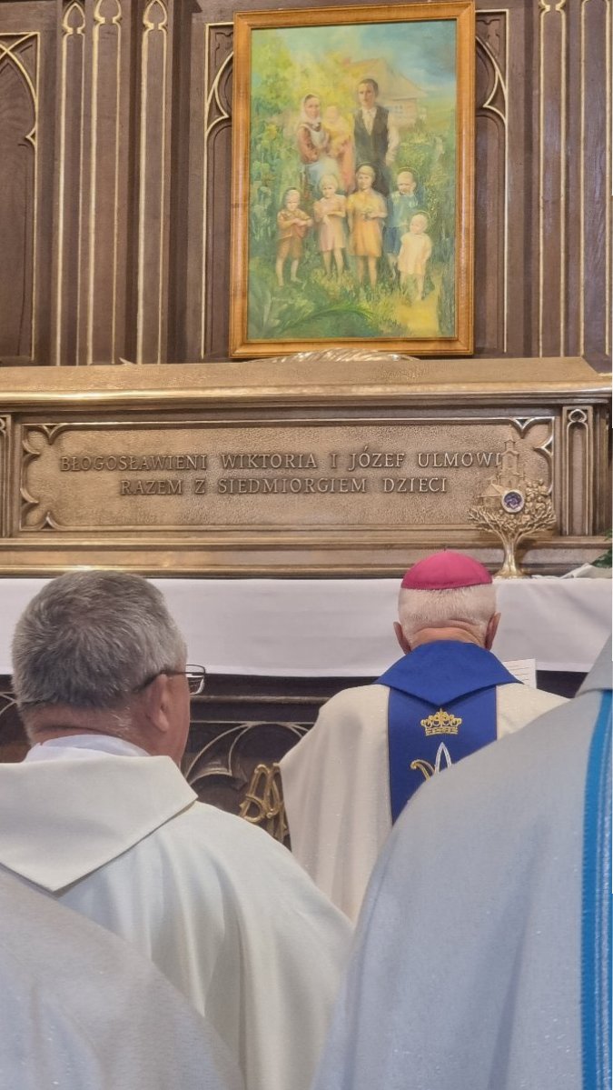 Z kolei po błogosławieństwie kończącym Mszę Świętą, kapłani celebrujący Msze Świętą przeszli przed ołtarz, przy którym znajdują się doczesne szczątki bł. Rodziny Ulmów. Tam odmówiono litanię do nowych błogosławionych oraz zawierzono im i Matce Bożej Rodzinę Róż Żywego Różańca Archidiecezji Przemyskiej.