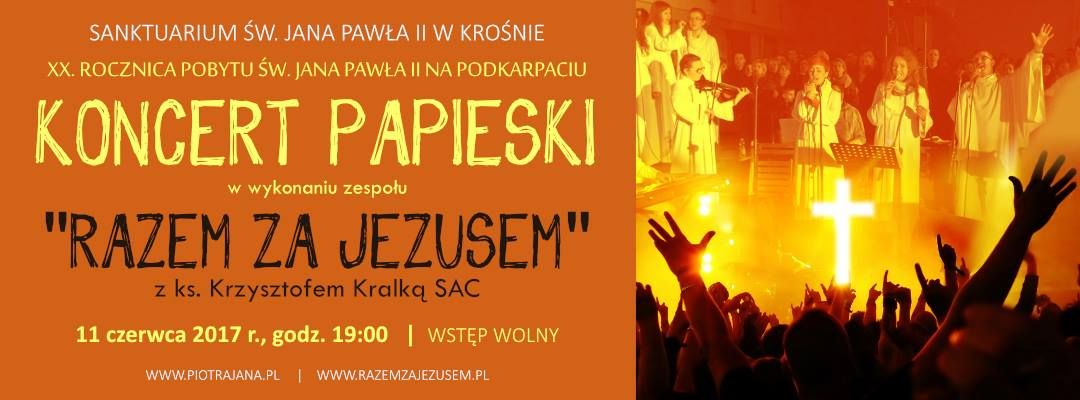 - 19.00 – Koncert Papieski w wykonaniu ks. Krzysztofa Kralki SAC z zespołem „Razem za Jezusem”.